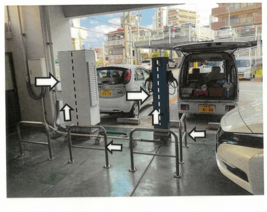 それぞれの左側側面と屋根、背面半分を刷毛で塗装(矢印で表示)。