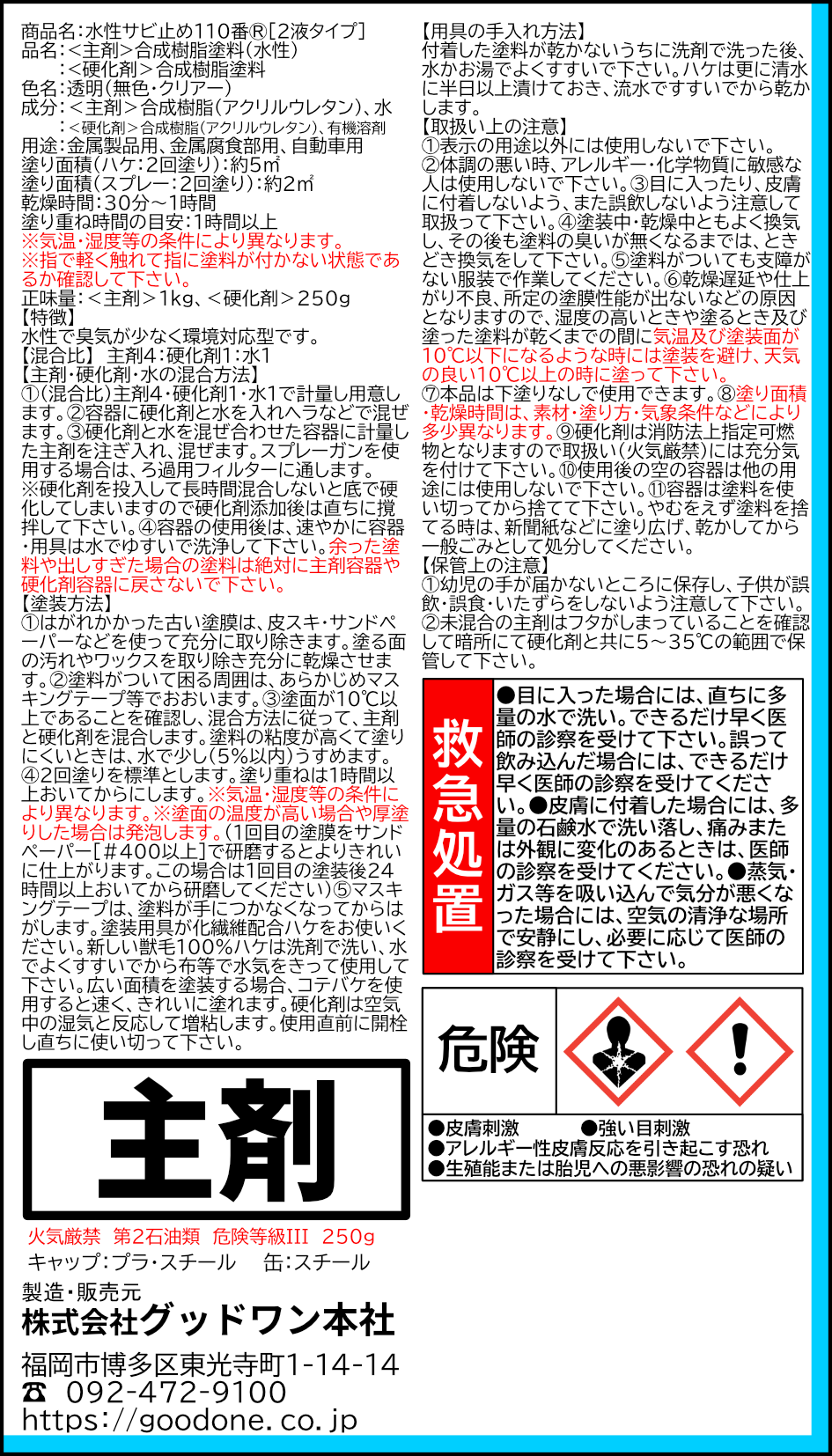 水性サビ止め110番(R)[2液タイプ]-硬化剤250g
